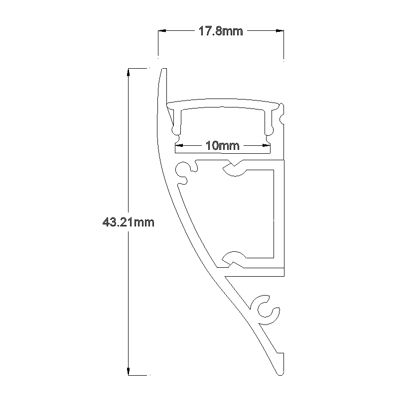 39mm x 39mm, Angled corner channel, Curved faceplate, White finish