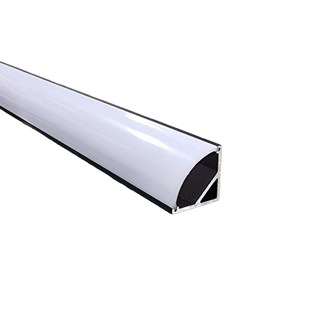 16mm x 16mm (10mm internal) Corner profile with rounded lens. Black channel & acrylic opal lens.