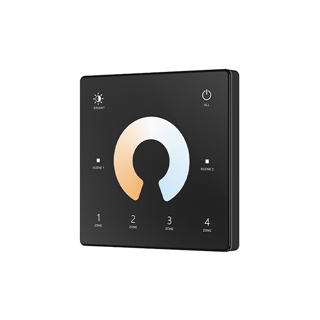 Dual colour LED wall mounted remote, with built in dimming and four zone control.
