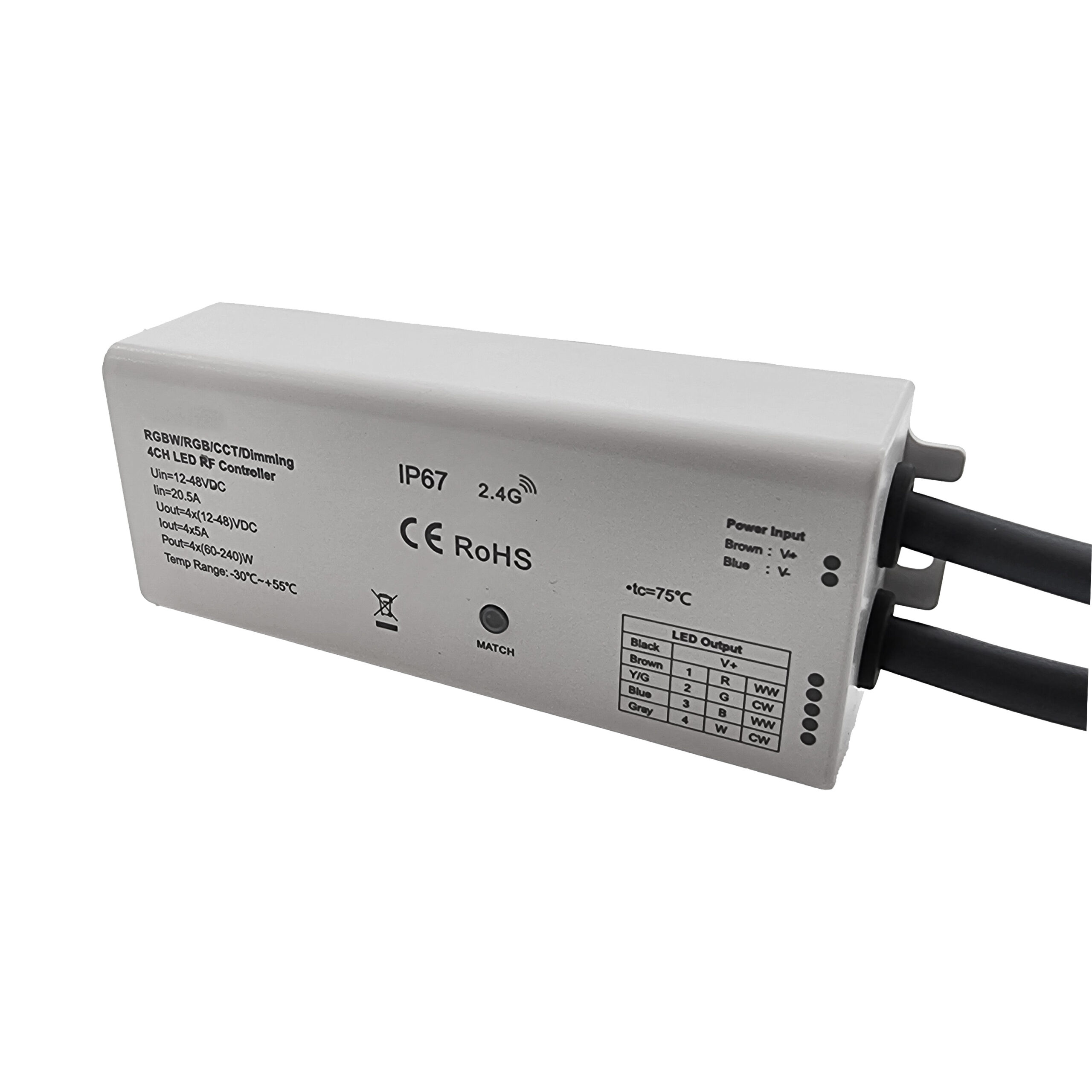 The brightness of R, G, B and W can be individually adjusted to achieve millions of colours.