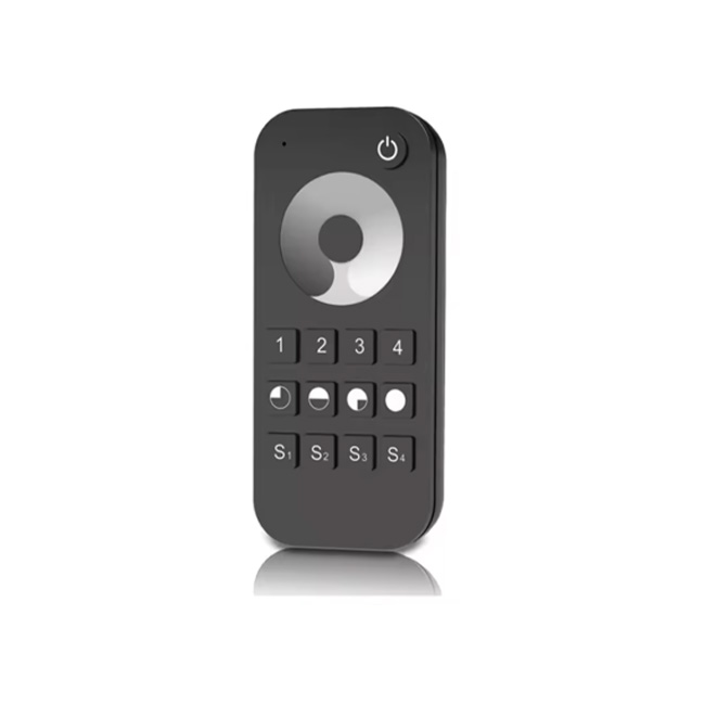 Hand held remote for single colour LED. Has built in dimming and can control four different zones.